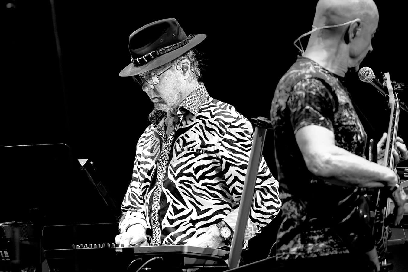 De band opent met Captain Bobby Stout, krachtig gezongen door Hart. Meestal speelt het gezelschap covers, vanavond zelfs alleen maar. Geen probleem, want de grootste hits van MMEB waren oorspronkelijk van bijvoorbeeld Bob Dylan of Bruce Springsteen. Dit nummer zag het levenslicht bij The Jerry Hahn Brotherhood, een band die zich niet aan de vergetelheid heeft weten te ontrukken. Bij Don’t Kill It Carol (van Mike Heron) zingt Mann zelf even mee, later op de avond is zijn stem beter opgewarmd. We luisteren naar aangename progrock en Hart blijkt te kunnen schreeuwen als een hardrocker. Bij solo’s verlaat hij regelmatig het podium. Dat zou Mick Jagger of Bruce Springsteen niet moeten proberen, maar misschien heeft Hart af en toe tijd nodig om bij te komen. En dat terwijl hij met zijn 67 jaar een van de jonkies is.